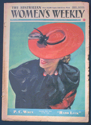 The Australian Woman's Weekly for w-weekly-March-28-36 illus. with advts. photos t/out. pub. Sydney Newspapers 1936 or. col. wrappers, newsprint paper, roy.4to. pp.56. Including covers. Little yellow with age, else fine. Price: $75.00 |
