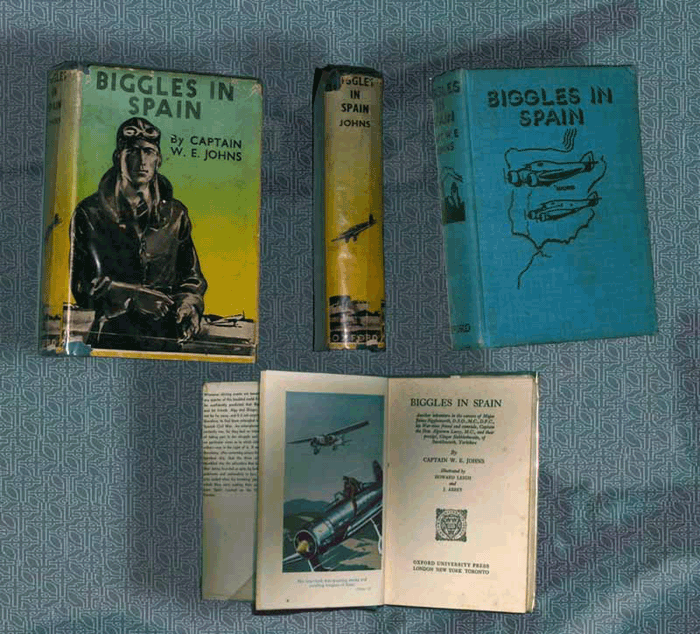 cloth with outline vignette of aeroplanes and map of Spain to front cover, black titles and